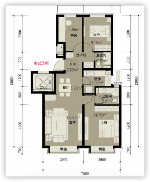 南北通透,全明格局,动静分区有序,南向7.5米两面宽,大尺度飘窗,采光充足。厨房主流L型设计,空间感强;