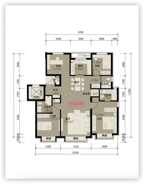 全能四房,270°三面采光,约11米南向三面宽,U型厨房、独立洗衣区、开放式餐厅,承载大家风范