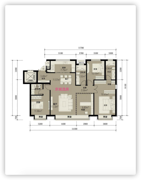 大面积四房,十字动线礼仪空间,优质尊荣格局,约14.1米超大四面宽,少有户型,采光通风更胜一筹,自定义开放式书房空间,百变空间随心所欲06