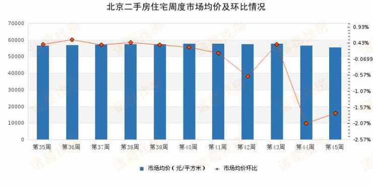 2021年第45周北京二手住宅市场均价环比下降1.74%:据诸葛找房数据研究中心监测,2021年第45周北京二手住宅市场均价为55464元/平方米,环比下降1.74%。