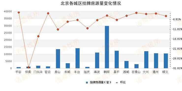 二、密云环比涨幅居首,朝阳挂牌房源量先进