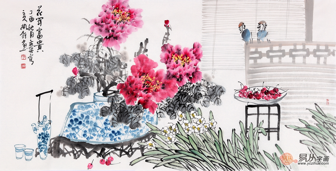 画家郭执铨写意牡丹图《花开富贵》(作品来源:易从网)