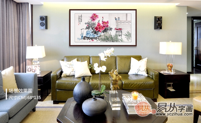 客厅沙发后面的装饰挂画选择,国画花鸟画能够让客厅焕发光彩,充满无限魅力,不仅视觉上令人赏心悦目、在寓意上也象征着吉祥富贵,催旺家居风水,可谓是家居装饰画的上上之选。更多客厅装饰花鸟画选择尽在易从网!