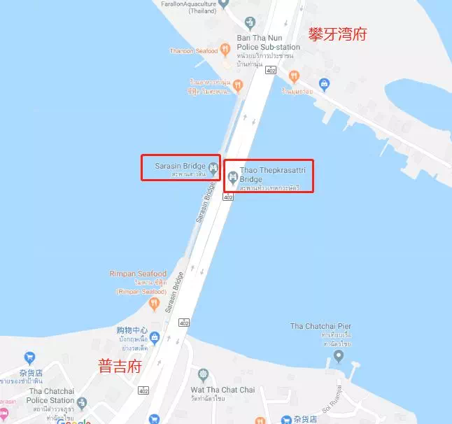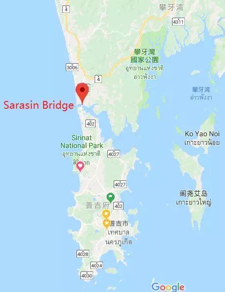1967年,连接普吉岛和攀牙湾府的萨拉辛大桥(Sarasin Bridge)开建,促进了普吉岛上当地项目和更多基础设施的发展,于1974年完工。萨拉辛大桥以泰国一代忠臣博特-萨拉辛宰相(พจน์ สารสิน,Pote Sarasin,1905年-2000年)的名字命名。