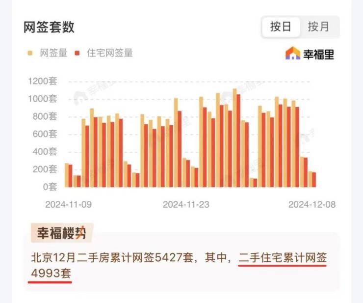 根据建委网签数据,截至12月8日,北京新房网签1135套,二手房网签4993套。