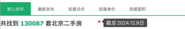 截至12.9日,绿中介北京二手房挂牌130087套。