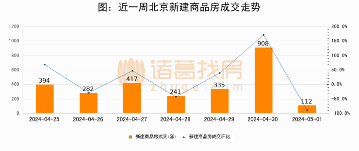 【北京成交日报】05月01日新房成交112套、二手房5套;涨价房源66套