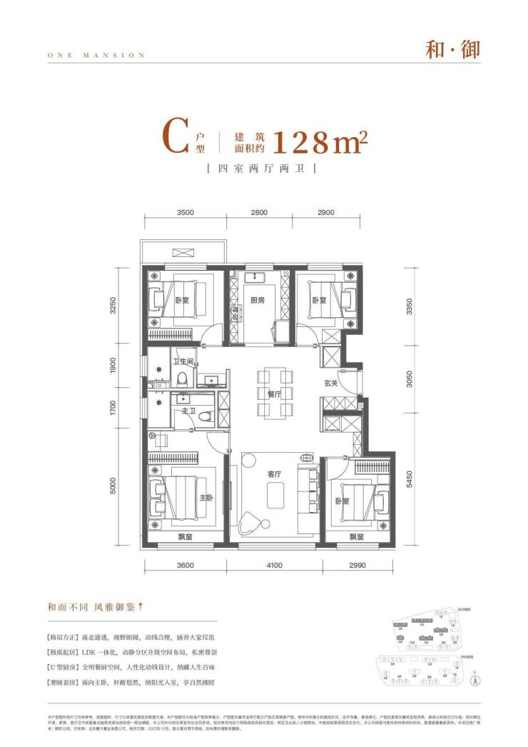 解析:128平四居南向三面宽,主卧套房设计,主卫为明卫,通风行良好;厨房是U型设计,增大储物空间,厨房、餐厅、客厅一体化,动线合理,餐厅的位置比较宽敞,可以容纳一个六人位的餐椅,朋友来家中聚餐也不会显得拥挤。而且,仔细看这个户型的收纳做的很好,把一些小的空间充分利用。这个户型兼顾了实用性、舒适性,适合跟老人同住的家庭。