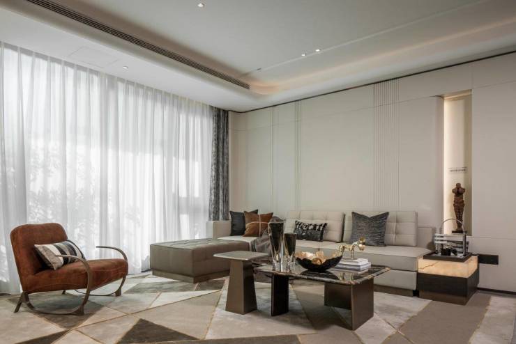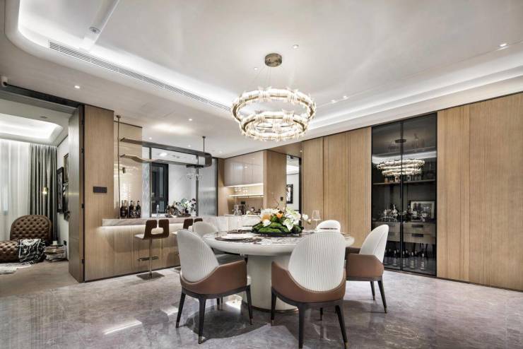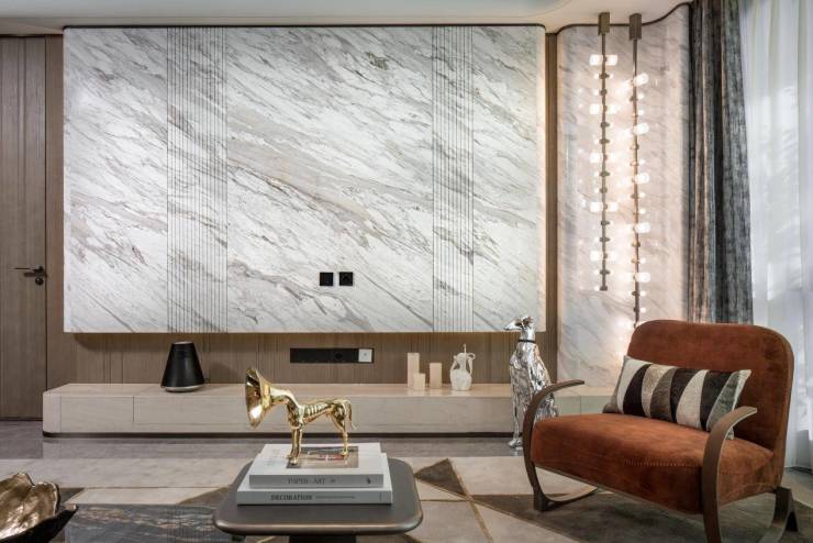 在精装品质上,项目同样花费了心思,重金甄选一线奢装品牌,同时进行石材背景墙及弧形包边设计,以曲面多样材质,来写意空间的平仄相合,好像一幅诗词卷轴徐徐展开。在里面生活,能时刻感受到一种温润质感。(不同户型实际交付标准有所不同)