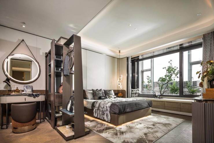 除此之外,对于收纳空间的设计,可以满足客户对空间的至上要求。定制独立玄关柜、飘窗柜、高级灰酒柜等多重折叠收纳,空间极致扩容,造就无界阔境。