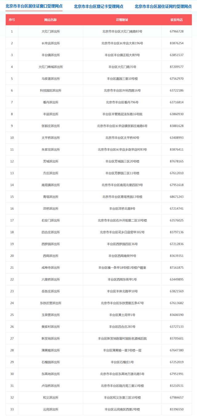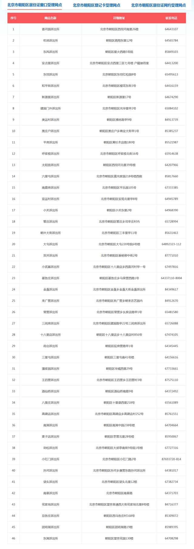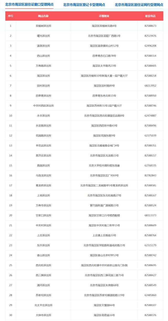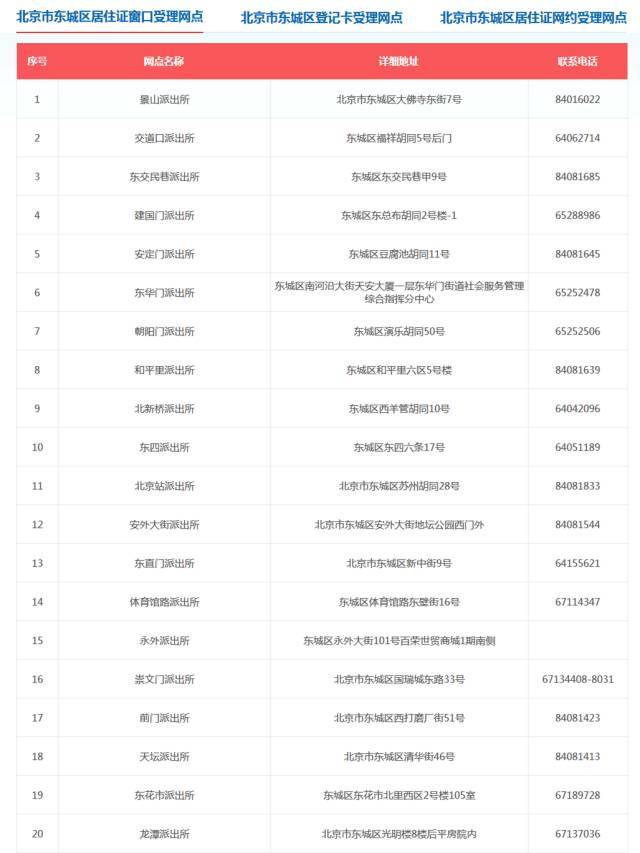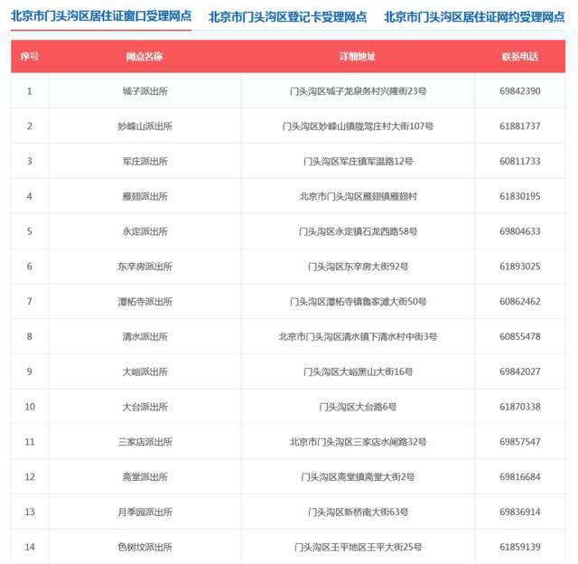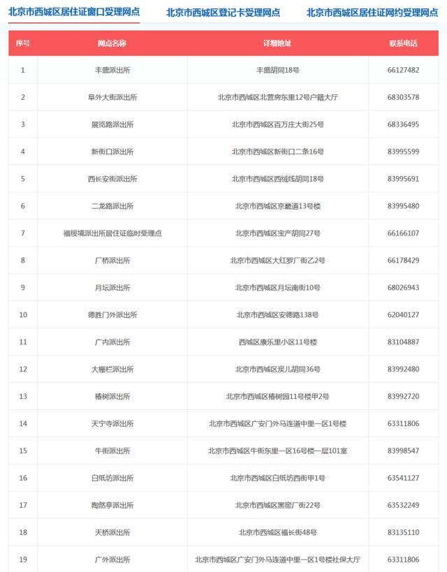 北京市16区居住证窗口受理网点如下(可上下滑动、双击可查看大图):