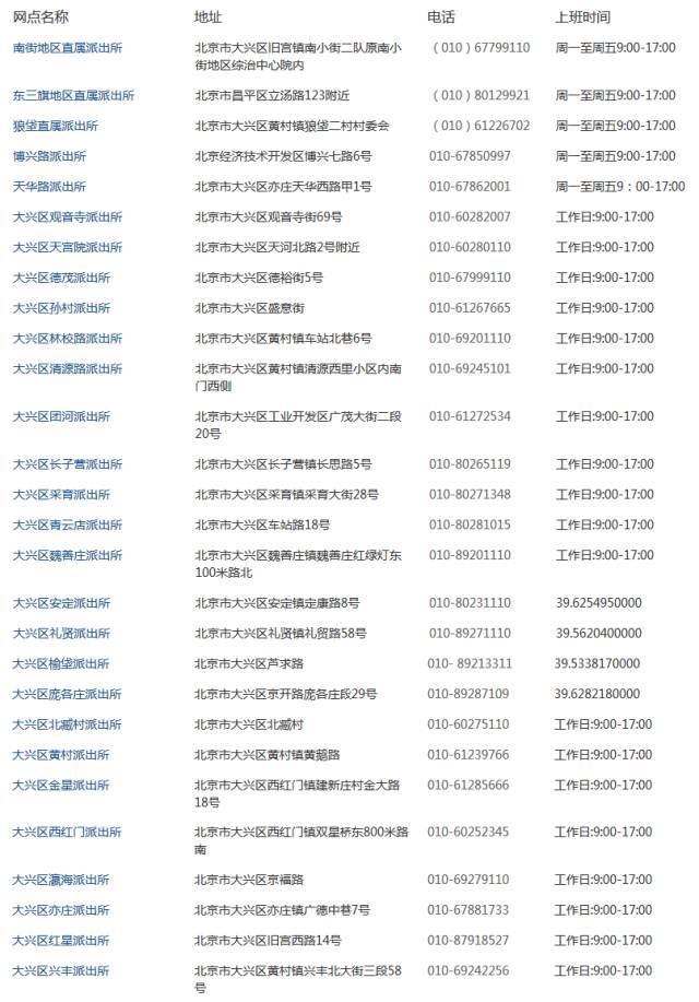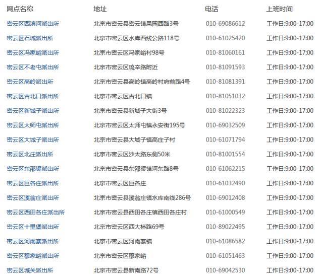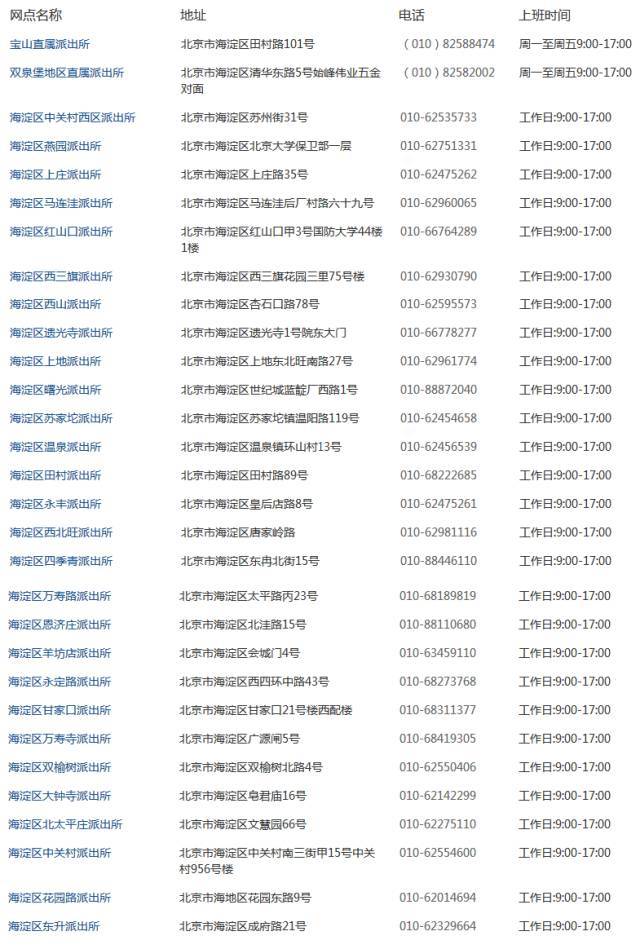 注:派出所受理点只受理网上预约申请,直接到现场递交的不予受理。