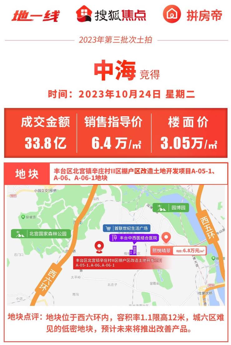 最后上周北京市场又有一宗新地拍出,丰台北宫地块报价截止,仅中海报名并报价。最终,该宗地以33.8亿元底价成交,楼面价约3.05万元/㎡,销售指导价6.4万元/㎡,地块接近西六环容积率1.1,你们说中海这次会不会效仿之前湖光玖里的产品呢?还是索性就出一水儿的别墅,如果在这来个阳台配落地窗您会买账吗?