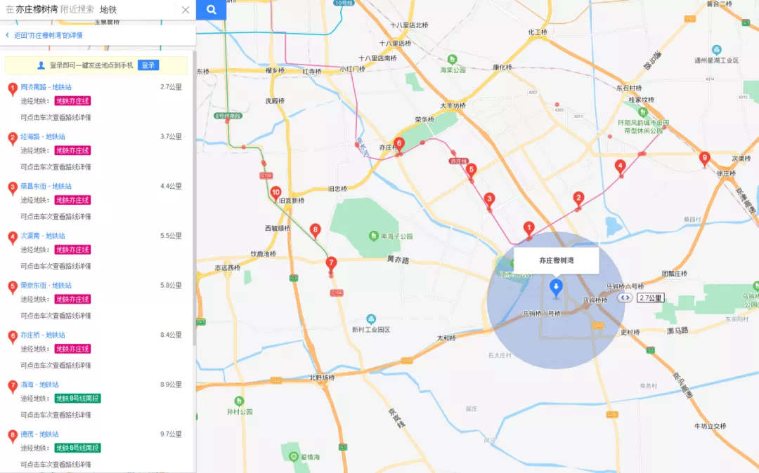 地块距离地铁亦庄线2.7公里,远一些,不过可以直达朝阳三环。