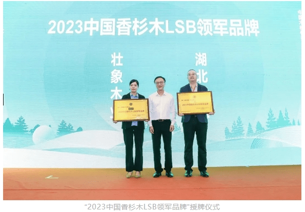 经中国木材保护工业协会组织专家审定,广西壮象木业有限公司、千年舟新材科技集团股份有限公司、江西益佳木业有限公司、杭州大王椰智环装饰新材料有限公司、宜丰县丰祥木业有限公司、贵州永盛木业有限责任公司、贵州省木业有限责任公司、洛阳汉子木制品安装有限公司、浙江升华云峰新材股份有限公司、德华兔宝宝装饰新材股份有限公司荣获 “2023中国香杉木生态板十大品牌”,广西壮象木业有限公司、湖北华盛新人造板有限公司荣获 “2023中国香杉木LSB领军品牌”。