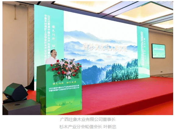 苏祖云司长发表了致辞,他在致辞中指出,党的二十大报告提出坚持可持续发展,坚持节约优先、保护优先、自然恢复为主的方针,坚定不移走生产发展、生活富裕、生态良好的文明发展道路。杉木作为我国重要的人工林树种,大力发展高端香杉木板材、高端家具等产业,将会成功广西林业产业改革发展继续保持稳中有进、进中向好良好势头的重要一环。