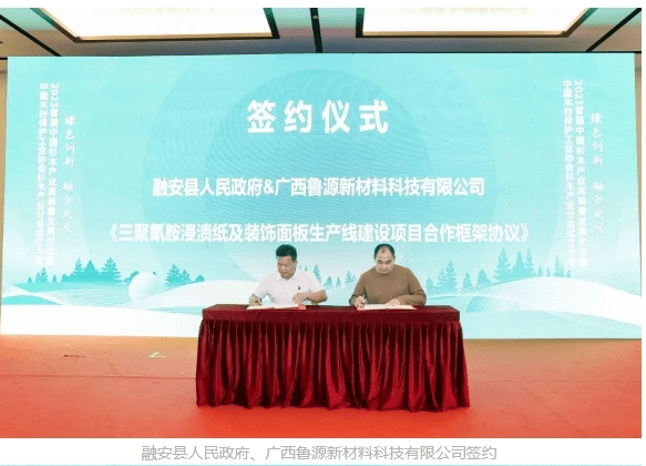 为推动融安县香杉木产业高质量发展,把林业资源优势转化为产业优势,中国木材保护工业协会与融安县人民政府,签订战略合作协议;融安县人民政府与广西鲁源新材料科技有限公司签订产业项目合作协议;中国木材保护工业协会与江西省家具协会、江西鱼珠木材市场有限公司签订战略合作协议;广西壮象木业有限公司与福人森工、合生雅居分别签订产品销售战略合作协议。