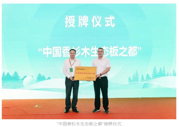 随后融安县 陈远昭副县长做了《融安县工业集中区招商推介》。会上举行了融安县 “中国香杉木生态板之都”授牌仪式。