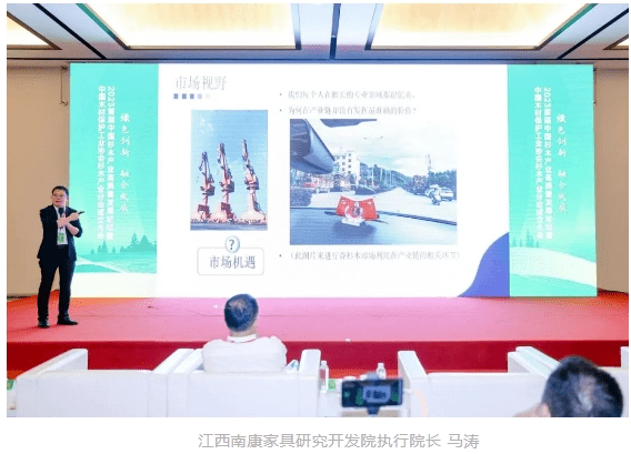 江西南康家具研究开发院执行院长 马涛做了《基于目前香杉木市场应用与未来家居发展趋势》的主题报告。马院长介绍了香杉木现状,从具体的案例入手,解析了市场现状,并分析了未来家居产业发展趋势。