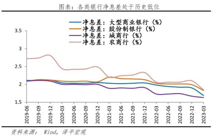 其实,“降加点”最大的难点是银行利差不断走低(下图),银行面临稳利润的巨大压力。