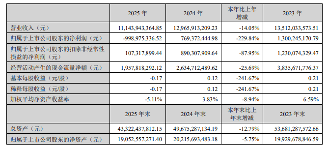 居然智家(000785.SZ)4月28日晚间披露2025年年度报告。报告显示,2025年公司实现营业总收入111.44亿元,同比下降14.05%;归母净利润亏损9.99亿元,同比下滑229.84%。