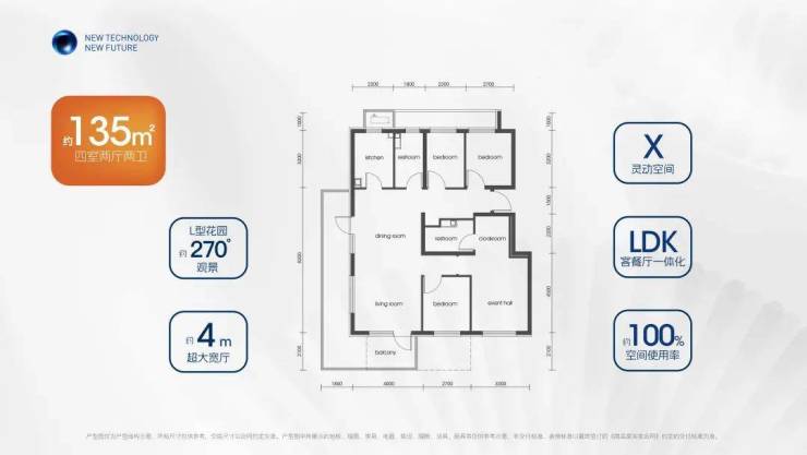 L型超长花园, LDK+X的灵动空间,将空间利用率拉到近乎极致的100%。