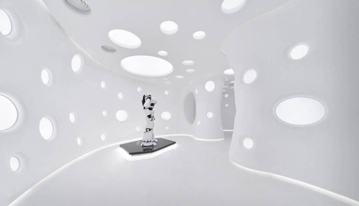 基于“缘”的思考,位于天津少有的半山区县蓟州的“鸿坤花语墅”,融合当地山之形态,结合现代设计理念与新技术,打造出沉静隽雅的桃源空间。因其女性空间的特质,“步步生莲”美容院考虑贴合女性柔美体态的特征,打造出动态的穿越于时空花园的意向。要启发参观者穿越于时空思考的“山东即墨机器人办公室展厅”,打造了连接科技与智能、现在与未来的现代空间。