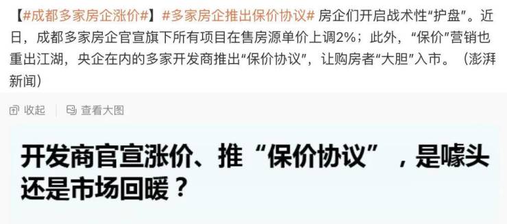 今早,多家房企推出报价协议,成都多家房企宣布涨价的新闻冲上热搜!