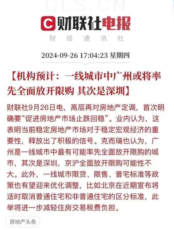 “调整住房限购政策”意味着限购最后的堡垒——北上广深,也将迎来突破。