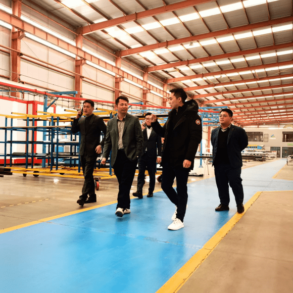 在签约仪式进行前,叶阳阳光房总经理熊总先是陪同带领CMECH希美克高层一行参观了叶阳阳光房的展厅、厂区和生产车间,深入了解了叶阳阳光房的企业文化、产品矩阵、工艺特点以及技术优势等,随后,双方就企业概况、发展历程、未来战略等方面做了更进一步的会议交流。