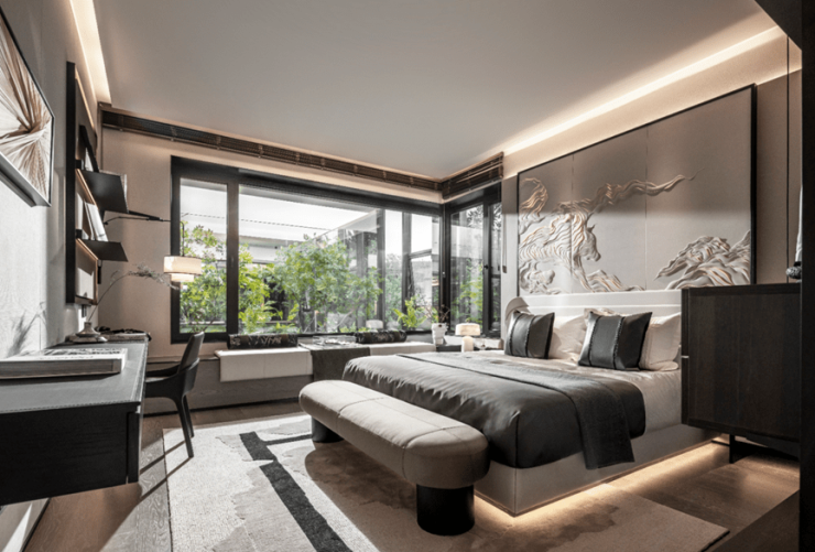 香山樾联袂朱斌、刘骅、王少青、盛永娜等当代大师,以宋式审美为参照,通过意、形、色、韵、质、空“建筑六法”,构思区域罕见的全四层墅境大平层。