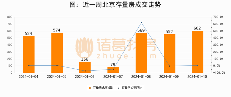 从存量房来看,2024年01月10日北京存量房单日成交602套,比昨日增加50套,环比上涨9.1%。从近一周存量房成交来看,北京存量房日均成交套数为436套,01月10日单日成交602套,高于近一周平均水平38.1%。