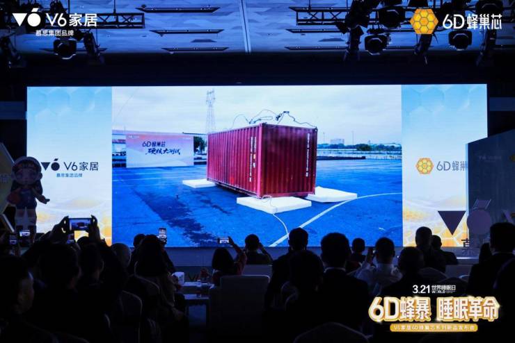 3月14日,深圳科技馆内,V6家居举办“6D蜂暴睡眠革命”系列新品发布会。围绕“用科技实现舒适生活”的品牌主张,现场通过极限飞车挑战、集装箱压顶、烟雾穿透、排水防潮四大测试,将6D蜂巢芯的支撑性、透气性、排湿性等技术指标转化为可感知的视觉呈现。在3.21世界睡眠日来临之际,这场硬核发布会让6D蜂巢芯的科技性能真正实现了可量化、可感知、可触及,也让V6家居“用科技实现舒适生活”的品牌主张,从一句口号变成了看得见的事实。