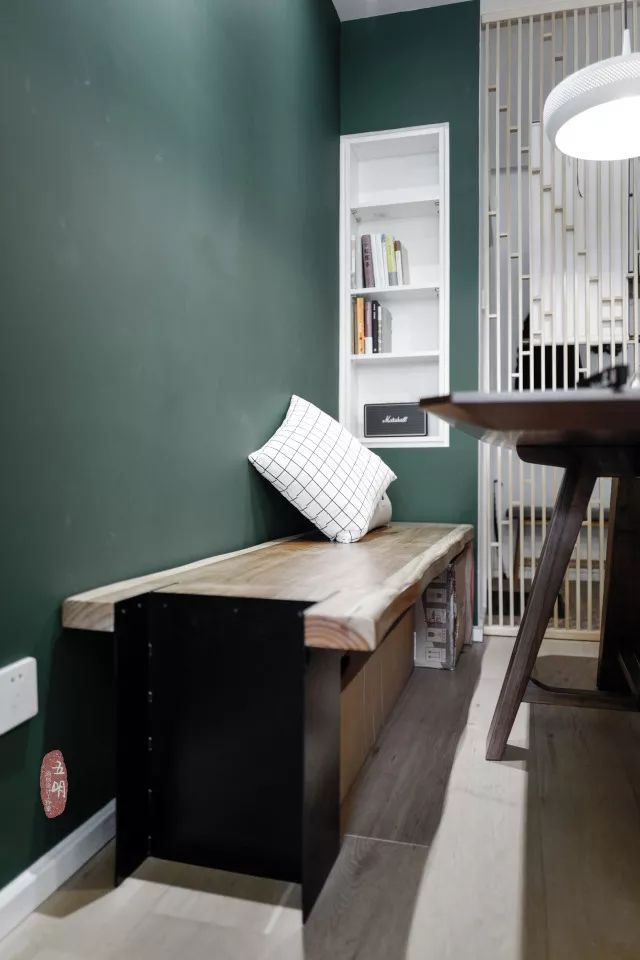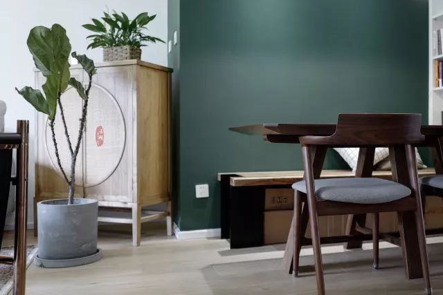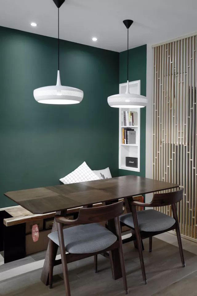 餐厅处用墨绿色刷了一面墙