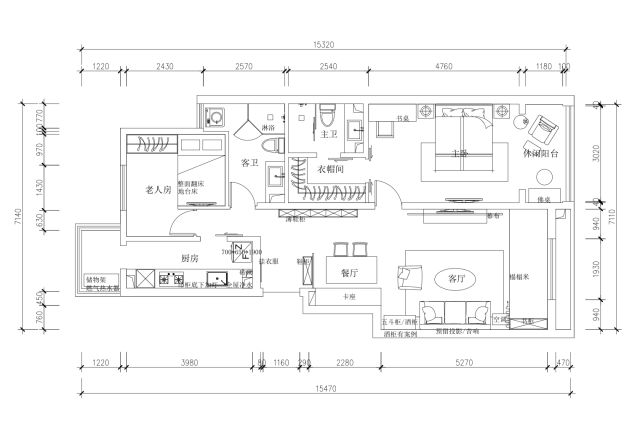 厨房和老人房房门移位