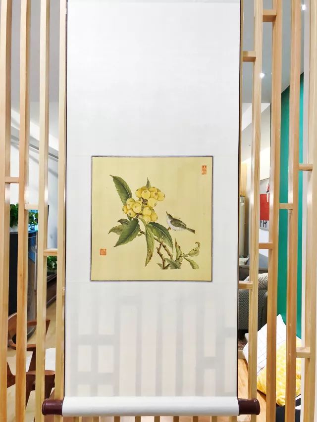 一幅工笔花鸟挂在这里