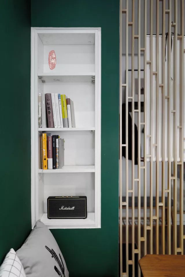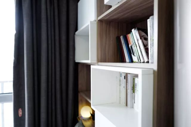 一侧墙壁设置白色小书橱