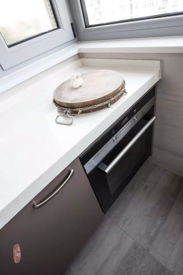 厨房台面直通到阳台,烤箱洗碗机内嵌