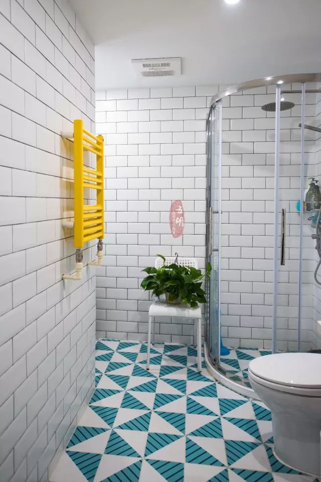 白瓷砖墙搭配明黄色的暖气片清新明快