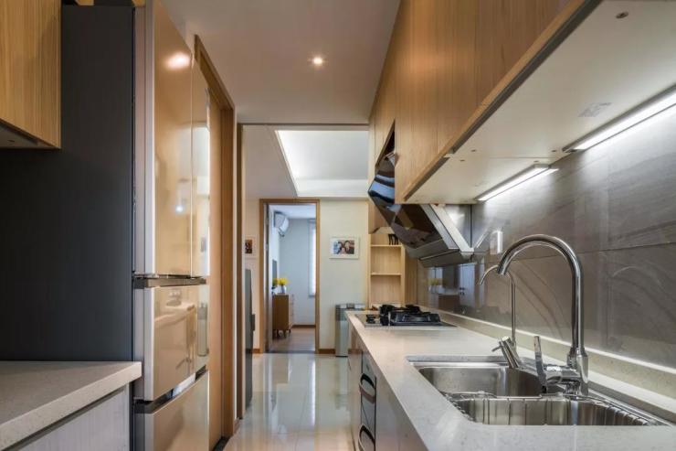 焕然一新的厨房空间里,也有箭牌的身影。箭牌卫浴为厨房空间提供了厨用水槽和厨用龙头,双槽盆的设计,将洗碗和洗菜分开,防止串味;优质304不锈钢,精拉丝工艺,耐腐蚀,易清洁;防溢水R角设计,让台面更易清洗更干净。