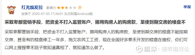 网上有人爆料:泰禾将资金不打入监管账户,挪用购房人的购房款,导致楼盘停工,不能按期交房。