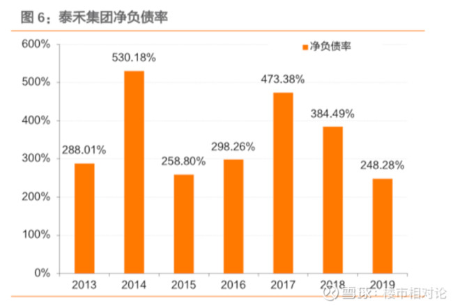 2017至2019年泰禾净负债率分为473.38%、384.49%、248.28%,远远高于同行。