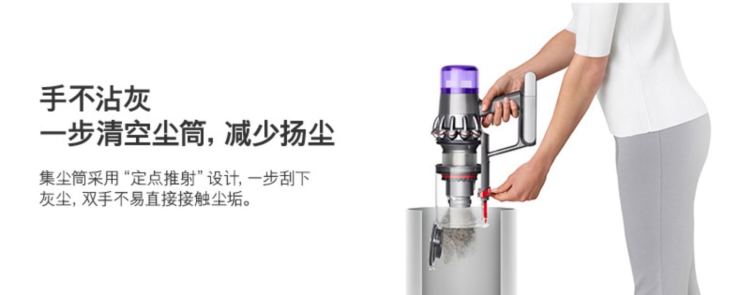 还有这款吸尘器的集尘筒设计也是很贴心,采用“定点推射”设计,一步就能刮下灰尘,不会扬尘。打扫新装修的房子的时候,甚至可以做到完全手不沾灰,单手就能完成拆卸,非常方便使用了。