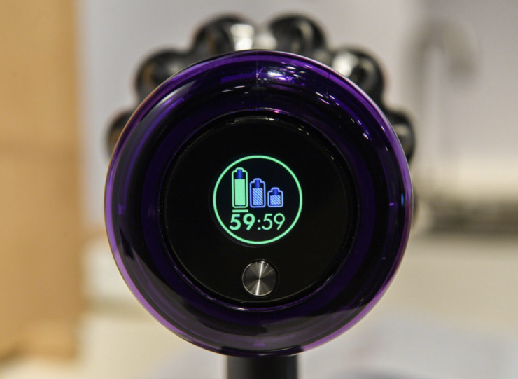 除此之外还有一点非常让我满意,就是吸尘器主机尾端有一块LCD显示屏,用的时候,机器的性能状态、续航时间、以及当前清洁模式、滤网保养和堵塞排除指引等提示都一目了然。自动模式下,dyson戴森V11 Absolute还可以根据不同地面类型,智能调节吸力大小、功率和运行时间液晶屏幕实时显示机器状态,不用担心突然没电、机器故障之类的问题。超智能有没有?