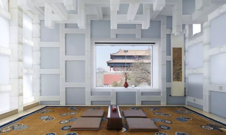以聚乙烯建筑材料代替石木旨为重新定义「现代化砖石建筑」,传统风格的内部装饰与极富前卫现代美感的半透明聚乙烯几何构造,在制造出强烈的设计反差感,此外屋顶上的开放式空间更可以远眺紫禁城,将北京的沧桑华美尽收眼底。