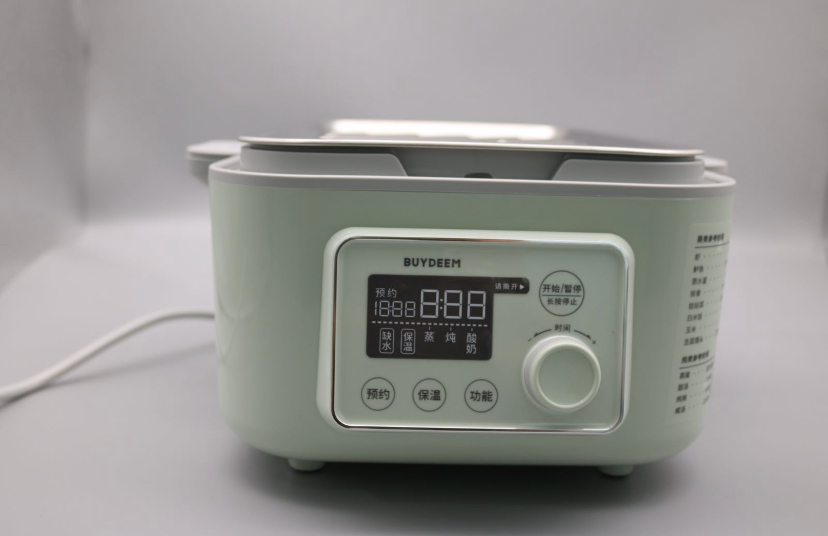 北鼎电蒸锅将操作界面设置在窄面积的一侧,界面操作指示也还算清晰,时间选择可以用旋钮调节,功能选择则是塑料面板按钮,整体看起来不错,但用起来有一点塑料摩擦感,没有那么精致,让人感觉不太舒适。