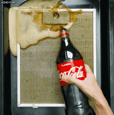 1、首先较容易有油污的地方就是纱窗了,花生油,橄榄油、豆油,它都会吸收在里面,因为它是孔多嘛,这时候你可以把可乐倒在纱窗上,我知道有些破费,如果它太脏了,那没办法,破费就破费了,在配合上清洁剂,油污很快就能擦干净