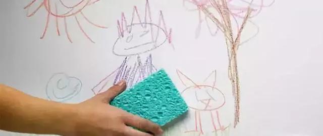 3、熊孩子较爱写写画画了,如果家里孩子用蜡笔涂抹墙面,整个大花脸,你也别着急,因为蜡笔它是蜡类,遇到热就会变软,这就好解决了,用吹风机吹一两分钟,用清洁布抹点面霜,轻轻一擦就可以带走了。不要问我面霜是什么..