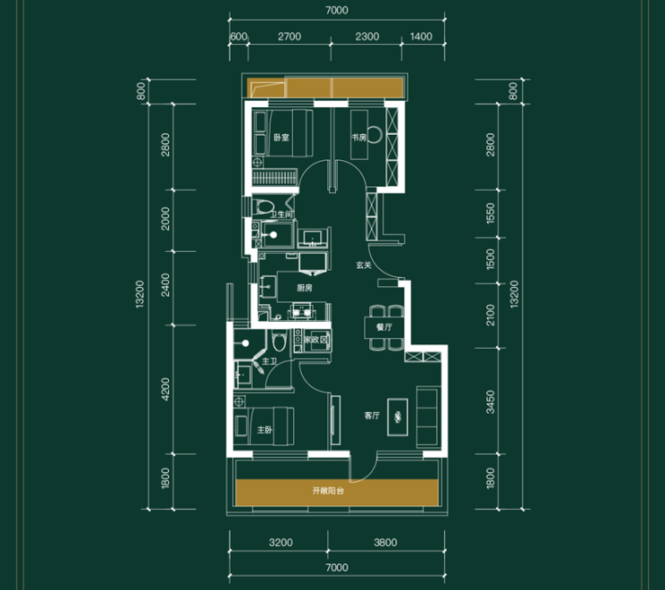 南向三面宽+南北通透+全明的经典格局。飘窗+设备平台+阳台全齐,中央LDKB一体式设计,视野非常通透。主卧套间拥有独立卫浴和独立衣帽区。玄关+餐边柜+家政区的组合,让全屋的收纳空间非常充足。总收纳超11立方米。