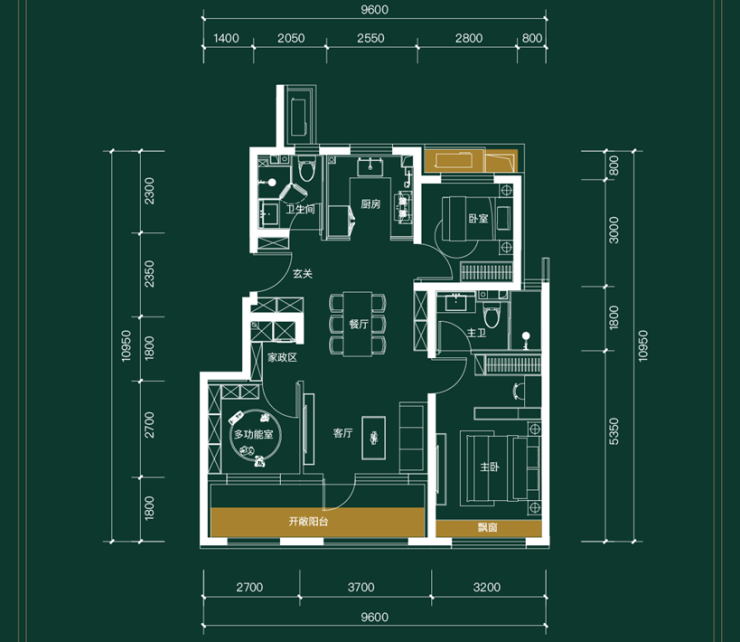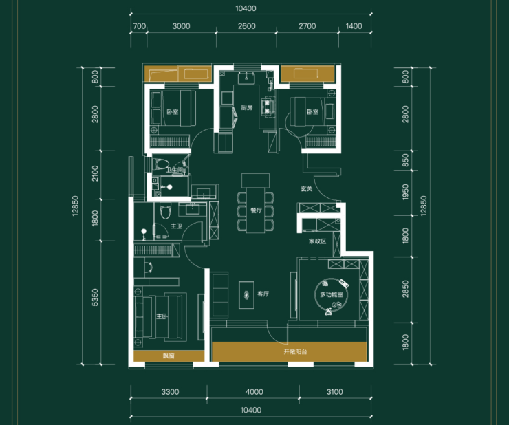 经典的四叶草布局,卧室分布四角,三代人共居也能互不打扰。南向总面宽放大至约10.4米。4米的宽厅搭配LDKB一体式设计,整个餐客区面积近37平,相当宽裕。黑科技同样一个不少,使用率能达到93%。